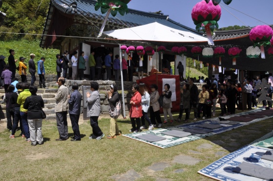 불기 2558년 부처님 오신날을 맞아 음력 4월 초파일(양력 5월6일) 오전 10시, 송악면에 있는 봉곡사(주지 자암스님)에서도 불자와 지역 주민, 등산객등 500여명이 참석한 가운데 봉축법요식이 열렸다.