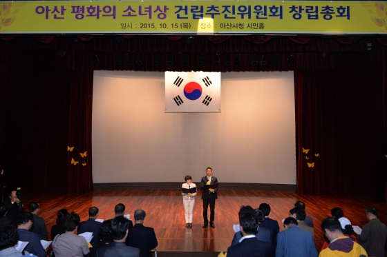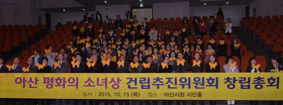 평화의 소녀상 아산 건립추진위원회 창립총회가 어제(15일) 오후 7시 아산시청 시민홀에서 열렸다.