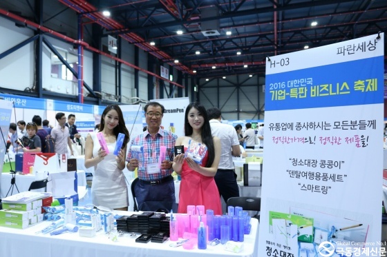 올해 처음 개최된 기업특판 전시회에 참가한 파란세상은 자사상품인 ‘청소대장 콩콩이(테이프 크리너)’, ‘덴탈여행용품세트(치약&칫솔)’, ‘스마트링(스마트폰거치대)’ 등의 주력상품으로 특히 해외 바이어들에게 인기 있었으며, 다양한 기업 구매담당자들에게 관심을 이끌었다.