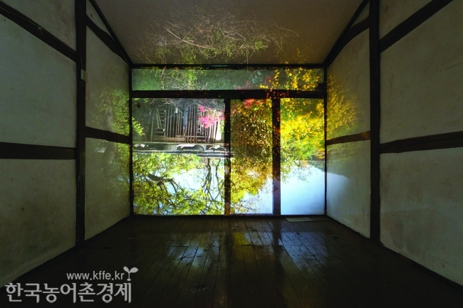 전시하는 작품들은 방 자체를 거대한 ‘카메라 옵스큐라’로 만들어 빈 방의 벽면에 바깥의 풍경을 보여주면서 동시에 방의 모습을 드러낸다. 이런 방식으로 지난 2014년부터 지금까지 ‘빈방-photography’ 시리즈를 진행하고 있다. 오랫동안 살던 사람이 떠난 후 텅 빈방과 흐르는 시간의 바깥 풍경이 서로 조우하는 순간을 포착해 인간이 기억하고자 하는 심정의 간절함을 프레임에 담았다. 시간-사물-공간을 한 이미지로 압축한 이 작품에서 삶의 단상을 발견해 보는 것도 관림의 묘미를 느낄 수 있다.