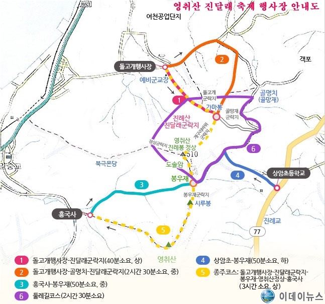 【영취산 진달래 축제 등산로 거리 및 소요시간】