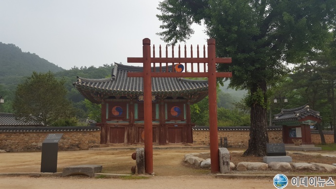 서원 입구에 문루인 확연루(廓然樓)가 있다. 이곳을 지나 서원으로 들어가는 곳에 ‘진입영역’이란 안내판이 있다.