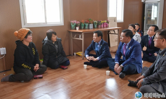 11일 오후 세월호가 인양된 목포신항에서 미수습자 가족들이 윤장현 광주광역시장을 만났다.