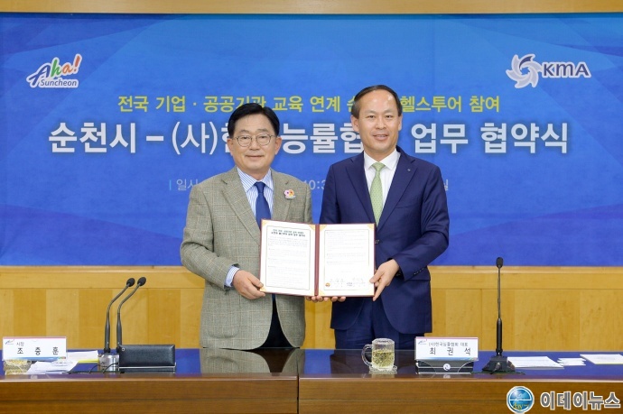 순천시는 11일 (사)한국능률협회(대표이사 최권석)와 전국 기업 및 공공기관 교육과 연계한 순천형 헬스투어 프로그램 참여 업무협약을 체결했다.