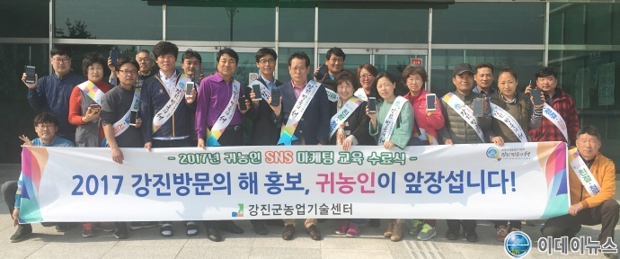 강진군이 귀농인 20여명이 참석한 가운데 지난 13일 농업기술센터에서 SNS 마케팅 교육 수료식을 가졌다.
