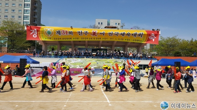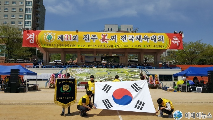 이데이뉴스 전국취재본부장 강진원 기자 『제31회 진주강씨 전국체육대회』가 2017년 4월 16일(일요일) 오전 09시 30분. 전남 순천시 중앙로 255(석현동 313) 순천대학교 운동장에서 역대 최대규모 전국 22개 지역팀(시·도 & 시·군·구) 1,300여명이 참가한 가운데 개최되었다.
