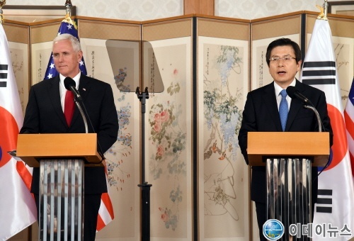 황교안 권한대행과 마이크펜스 부통령의 공동발표문 요지는 다음과 같다.