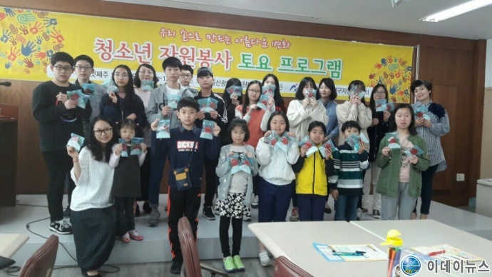 청소년 자원봉사 토요프로그램은 ‘1365자원봉사포털’에서 봉사활동 참여를 신청한 관내 초·중·고생들이 관내 어려운 세대 등에 전달할 지원물품을 직접 만드는 Hands-On 프로그램으로 22일에는 5월 가정의 날을 맞아“카네이션 코사지 만들기”후 독거 어르신을 방문해 직접 달아 드리는 시간을 가졌다.