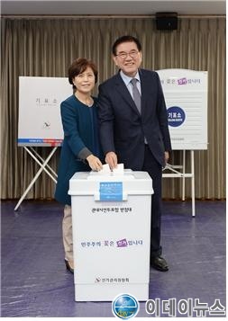 유덕열 동대문구청장은 2017년 제19대 대통령선거를 앞두고 4일(목) 오전 10시 30분 용신동 주민센터 5층에 설치된 사전투표소에서 부인 정승교 박사와 함께 무사히 투표를 마쳤다.