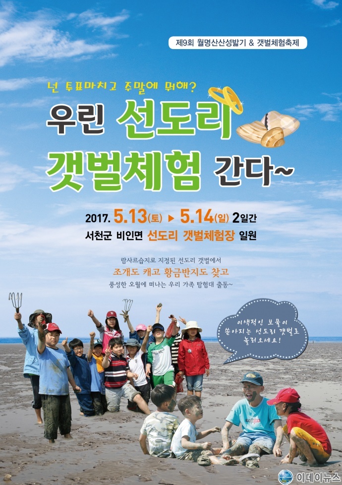 충남 서천군 비인면에서는 오는 13일부터 14일까지 ‘제9회 월명산 산성밟기 및 갯벌체험축제’를 선도리 갯벌체험장 일원에서 개최하기로 했다.