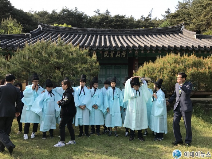 학생들의 선비복장을 지켜본 박교장은 " 정장을 차려 입고 넥타이를 하고 집을 나서게 되면 언행이 달라지며 매사에 몸가짐이 반듯해지듯 여러 학생들이 선비복을 입고 수업을 받게되면 더 선비정신을 함양하게 된다"라고 이해가 쉽게 설명을 곁들여 말했다.