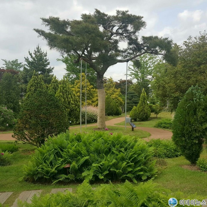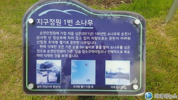 순천만국가정원 서문쪽 나무도감원에 있는 100년된 소나무로 상사면 산 정사부에서 산림청 대형 헬기로 2011년 순천만국가정원에 처음 심은 「지구의 정원 1번 소나무」로 명명 되었으며 포토존 명소이다.