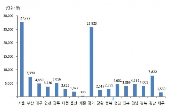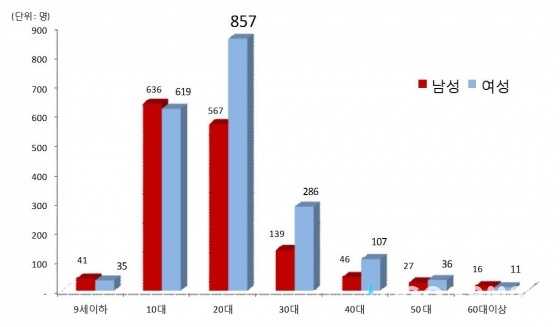 남성은 2010년 4만1000명에서 2015년 4만9000명으로 19.3%로 증가했고 여성은 2010년 6만명에서 2015년 6만2000명으로 3.2% 증가했다.