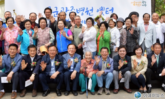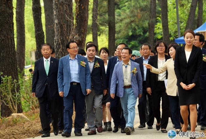 윤장현 광주광역시장이 20일 오후 서구 화정동 국군광주병원 옛터(5·18사적지 23호) 산책로 개장식에 참석해 임우진 서구청장, 오광교 서구의회 의장, 시의원, 마을 주민들과 함께 산책로를 걷고 있다.