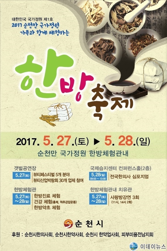 순천시는 오는 27일과 28일 이틀간 순천만국가정원 일원에서 한방과 뷰티산업 기반을 조성하여 지역경제를 활성화하고자 제3회 순천만국가정원 한방․뷰티 페스티벌을 개최한다.