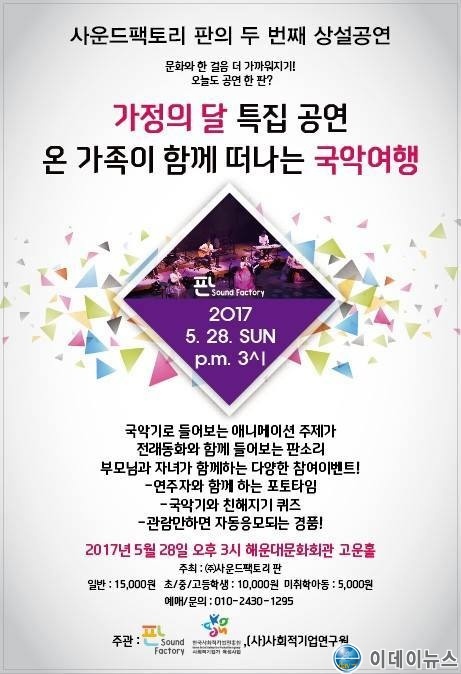 끝자락에 다다른 가정의 달이 아쉬워 사운드팩토리 판이 28일 오후3시 해운대문화회관 고운홀에서 온 가족이 함께 떠나는 국악여행을 준비했다.
