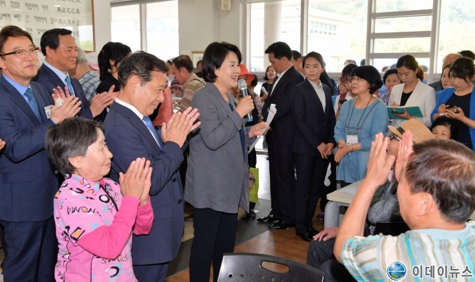 김동홍 어르신(90)은 김 여사를 꼭 끌어안고 “맏며느리 김정숙답게 효도하는 국가가 되길 바란다”고 말했고, 김 여사는 “대한민국을 나의 가족처럼 여기면서 정치를 하겠다”며 “문재인 대통령은 어른들께 효도하는 정부, 초심을 갖고 약속을 지키는 정부, 그런 마음을 갖고 정치할 것이다”고 말했다.
