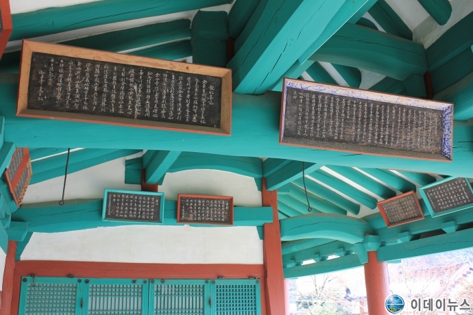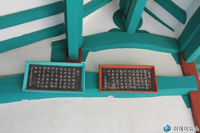 관수정의 마루 앞면에는 송흠의 시가 ‘원운’이라는 표시와 함께 붙어 있다.