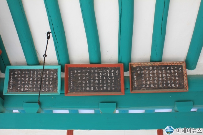 건너편에는 아들(子) 송익경, 하서 김인후, 모재 김안국의 시가 걸려 있다. 1)