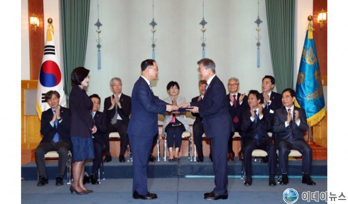 문재인 대통령은 오늘 14시30분 본관 인왕실에서 신임 국무조정실장 및 차관급 27명에 대한 임명장 수여식을 가졌다.