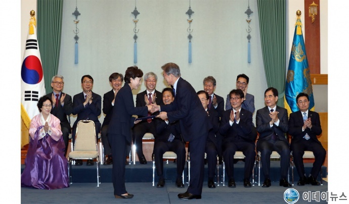 문재인 대통령은 오늘 19시 본관 충무실에서 신임 김현미 국토교통부 장관에 대한 임명장 수여식을 가졌다.