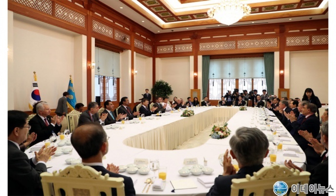 이어서 정세균 국회의장이 문재인 대통령의 성공적 국정운영과 대표단 여러분의 정치적 성공, 그리고 유라시아의 공동번영을 위해 건배를 제의했고, 오찬을 진행하면서 자유스러운 대화가 이어졌다.