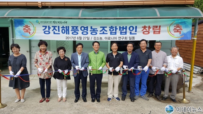 지난 27일 강진군 군동면 까치내재에서 강진 아로니아 재배 농업인 30명이 ‘강진해풍 영농조합법인’ 창립 선포와 함께 사무실을 열었다.
