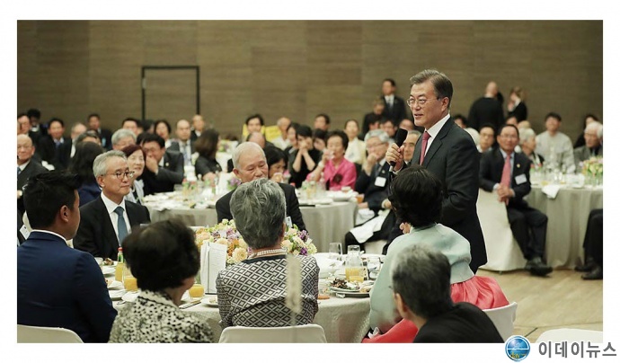 동포들의 대화를 들은 문재인 대통령은 “나라다운 나라, 품격 있는 나라, 당당한 나라를 말씀드렸는데, 저는 이것이 특별하다고 생각하지 않는다. 조금 더 정상적이고, 조금 더 상식적이고, 원칙적이면 된다. 그동안 비정상이 너무 깊어서 비정상을 정상으로 만드는 일을 조금만 해도 엄청난 개혁처럼 되었다. 이것이 쉬운 일이라고 생각하지 않는다. 국민 여러분만 믿고 가겠다. 4차 산업혁명의 큰 시대흐름 앞에 보수·진보가 무슨 의미가 있겠나. 이제 보수·진보, 좌파·우파, 종북처럼 편 가르지 말고, 국민을 편 가르지 않는 세상을 이루자”고 당부했다.