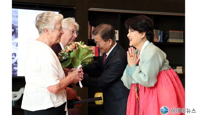 문재인 대통령은 5일 14시15분부터 45분까지 6.25전쟁 직후 한국에 파견되었던 독일 의료지원단 단원과 후손, 독일 적십자사 관계자 등을 만나, 우리나라가 어려웠던 시기에 숭고한 헌신과 인도주의적 헌신으로 큰 도움을 베풀어 준 독일 의료지원단에 대해 깊은 감사의 뜻을 전달하였다.