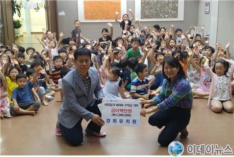 동대문구(구청장 유덕열) 회기동에 있는 경희대학교 병설 경희유치원(원장 박신애)은 6일(목) 오후 1시 회기동주민센터에 사랑나눔 바자회 성금 200만원을 전달했다. 이번 기탁식은 경희유치원에서 열렸으며, 성금은 유치원 바자회에서 나온 수익금으로 경희유치원생 어머니들의 봉사단체인 꿈초롱 클럽은 지난 달 6월 30일 경희유치원에서 유치원생들과 어머니가 함께하는 ‘경희 사랑나눔 바자회’를 개최했다.