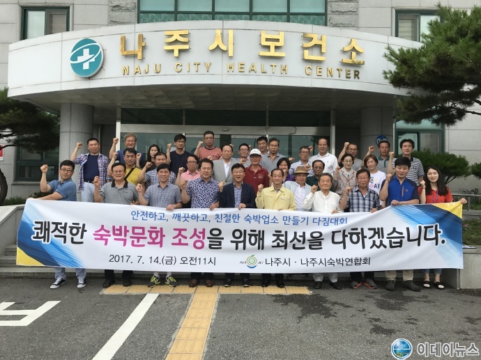 나주시(시장 강인규)가 쾌적한 숙박 환경 조성에 따른 시민과 관광객의 편의 향상을 위해 지난 14일, 보건소에서 숙박영업주 40여명이 참석한 가운데 숙박연합회 다짐대회를 개최했다.