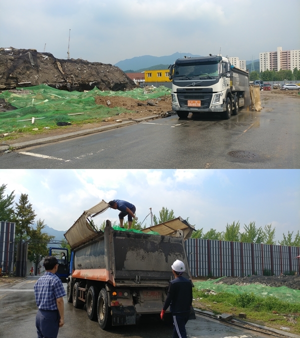 이에 따르면 시는 이달 4일 한강유역환경청과 합동 점검을 실시하고, 현재 6m와 8m 높이로 방진벽이 설치된 중앙로, 관문로, 교동길 등의 1.4km 구간에 방진망을 추가 설치할 것을 개선 명령했으며, 같은 달 7일에는 폐기물 반출 차량에 대한 적재불량 사례를 적발하고 과태료 처분을 실시하기도 했다.