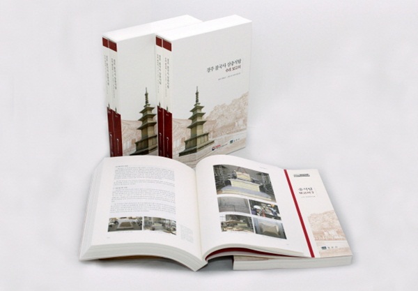 총 2권으로 구성된 `경주 불국사 삼층석탑 수리보고서`에는 불국사 삼층석탑 해체수리와 관련된 모든 과정에 관한 내용이 담겨 있다. ▲ 1권에는 불국사 연혁, 사업현황, 조사연구, 해체ㆍ조립과 보존처리 과정은 물론, 국립문화재연구소에서 개발한 특허기술(파손부재 구조보강, 무기질재료)을 활용한 방법을 자세히 수록했다. ▲ 2권에는 수리 전ㆍ후의 석탑 도면, 보존처리 자료, 수습유물 관련 자료 등을 담았다.