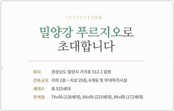 한편 `밀양강푸르지오` 본보기 집은 경남 밀양시 가곡동 592-5 일대에 마련한다.