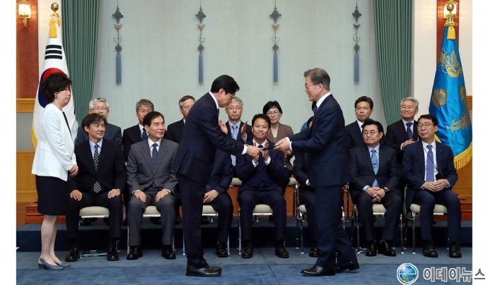 문 대통령은 임명장 수여식에서 "정말 중요한 시기에 아주 정말 무거운 책임을 맡으셨다. 아주 기대가 크다"고 밝혔다.