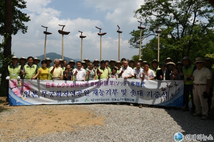 산림조합중앙회(회장 이석형)는 7월 21일(금) 일본(日本) 사이타마 현 지치부군(埼玉県 秩父郡) 무궁화자연공원(ムクゲ自然公園)에서 공원관리를 위한 재능기부활동과 공원의 안녕과 발전을 기원하는 솟대작가의 솟대 작품 기증식을 개최하였다.