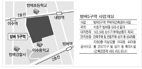 지난 21일 방배5구역 재건축 조합(조합장 김만길)은 시공자 선정을 위한 입찰공고를 냈다.