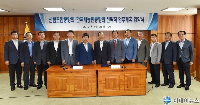 산림조합중앙회(회장 이석형)와 (사)한국새농민중앙회(회장 이성희)는 7월 26일(수) 서울특별시 송파구에 위치한 산림조합중앙회 회의실에서 임농업인의 삶의 질 향상을 위한 권익신장과 복지증진 향상을 위해 전략적 업무협약(MOU)을 체결하였다.
