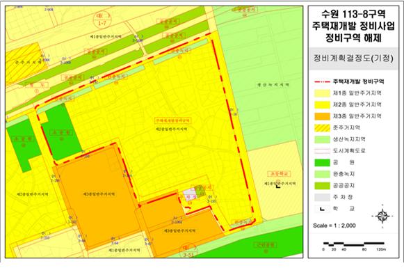 1일 수원시는 재개발을 추진해오던 권선113-8구역과 권선113-10구역 정비구역 해제 및 지형도면 변경을 고시했다.