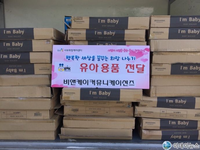 경기도 남양주시 전접에 위치한 (주)비앤케이커뮤니케이션즈는 지난 1일 지역의 어려운 아동들을 위해 7백만원 상당의 유아용품을 서부희망케어센터에 전달했다.