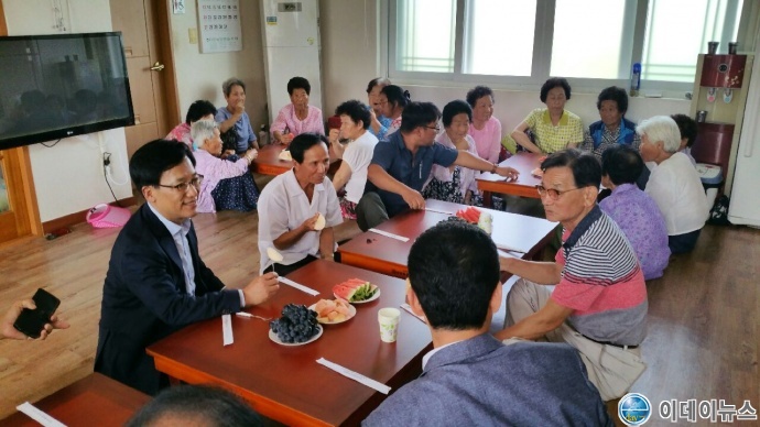 기록적인 폭염이 이어지고 있는 가운데 박병호 광주광역시 행정부시장이 2일 오후 서구 서창동 발산경로당 등 무더위쉼터 3곳을 찾아 어르신들의 여름나기를 살피고 있다.