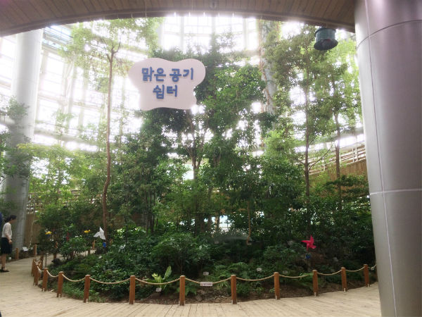 실내온실 곶자왈생태관에 마련된 `맑은 공기 쉼터`에서는 마삭줄, 산호수 등 우리나라 토종 공기정화 식물을 소개한다.
