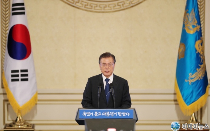 문재인 대통령의 모두발언이 끝나자 곧이어 질의응답순서로 진행되었다.