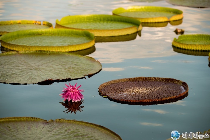 순천만국가정원 내 호수정원은 빅토리아연 꽃의 향연이 한창이다. 이 꽃은 밤에 피우는 꽃으로 유명하며, 순천만국가정원 물빛축제 개장 기간에 그 모습을 더 자세히 감상할 수 있다.