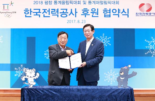 2018 평창 동계올림픽대회 및 동계패럴림픽대회 조직위원회(위원장 이희범ㆍ이하 조직위)는 이달 23일 조환익 한국전력 사장과 협약식을 갖고 후원 협약을 체결했다. 한국전력의 후원금액은 최상위 등급인 Tier1(500억 원 이상)이다.