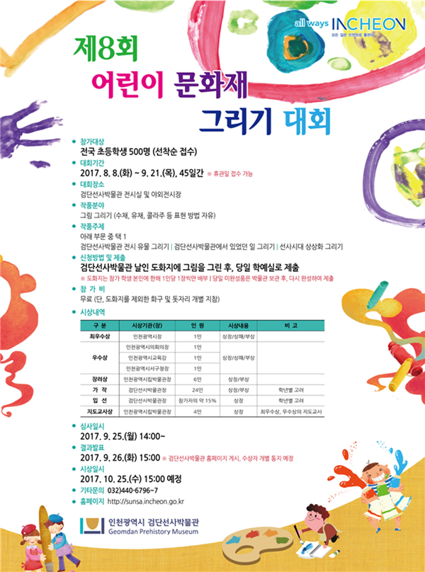 [아유경제=노우창 기자] 인천광역시(시장 유정복) 시립박물관 검단선사박물관에서는 현재 제8회 어린이 문화재 그리기 대회가 진행 중이며 오는 9월 21일까지 그림 접수를 받고 있다.