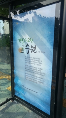 한편 `인문학 도시`를 만들어가고 있는 수원시는 2013년부터 버스정류장에 시민들의 창작 시를 게시해 시민들에게 호응을 얻고 있다. 현재 전체 버스 정류장의 67%에 해당하는 551개 정류장에 인문학글판이 설치돼 있다.