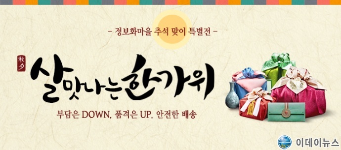 이번 정보화마을 인터넷판매 특별전 행사는 9월 27일까지 진행될 예정으로, 올해 추석선물은 영광 정보화마을에서 풍성하고 알뜰하게 준비하길 권해본다.