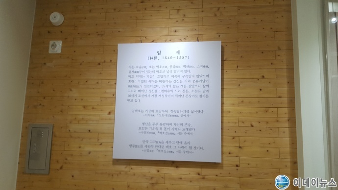 전시관에 들어서자마자 눈에 띄는 것이 “취하면 노래하고, 깨면 비웃으니 세상이 싫어하네. - 백호 임제 <이 사람 有人>” 라고 적힌 시이다.