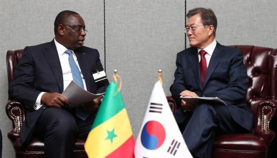문 대통령은 이어 마키 살 세네갈 대통령과 정상회담을 갖고 국제 무대에서의 협력과 양국관계 강화 방안 등에 대한 의견을 교환했다. 이번 회담은 문 대통령 취임 이후 아프리카 국가와 첫 번째 정상회담이다.